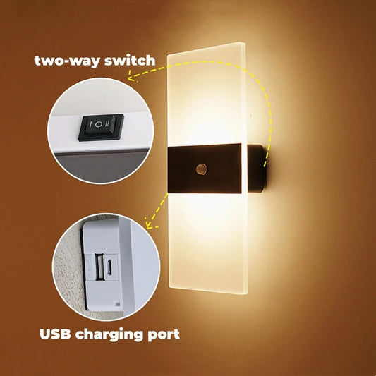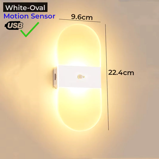 Motion Sensor Wireless LED Wall Lamp USB Rechargeable Acrylic Bedside Sconce Stairway Bedroom Decor Indoor Wall Lighting Fixture