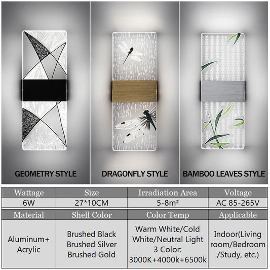 Indoor Acrylic Wall Lamp 6W Modern LED Wall Light Nordic Sconce Lamps Balcony Bedside Lights for Home Decoration AC85-265V