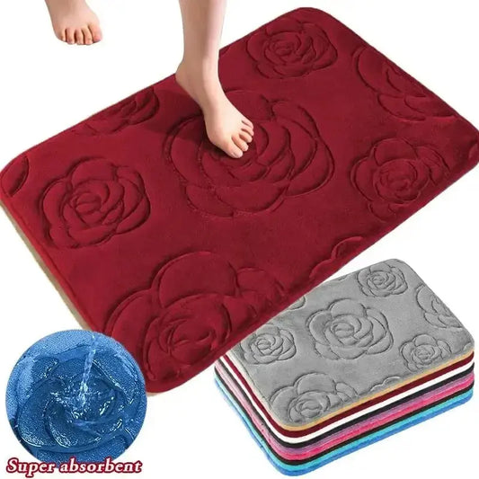 Bathroom Bath Mat Flannel Non-Slip Carpet Rose Flower Embossed