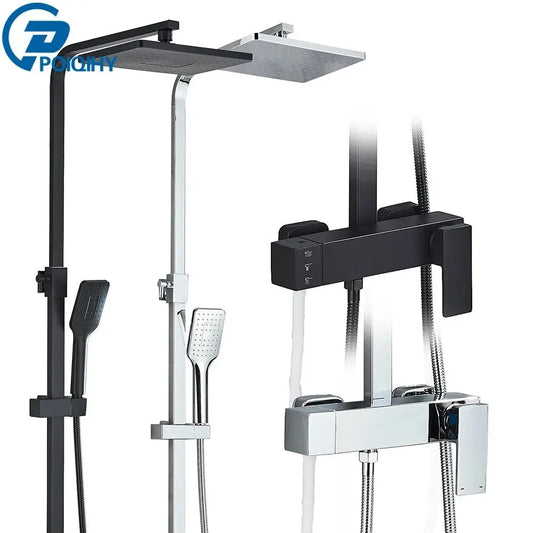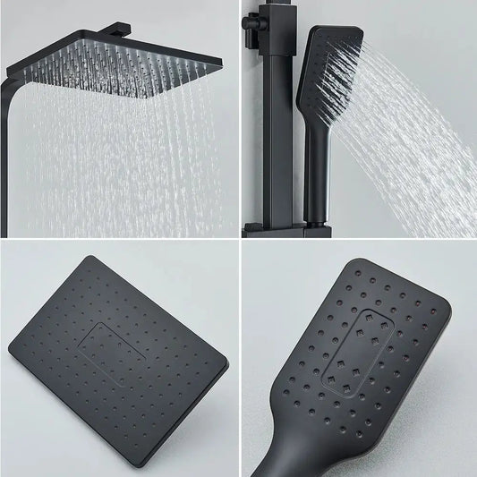 Black Shower Set Faucet Rainfall Bathroom Shower Mixer Tap Brass Bath Shower Column in Wall Shower Faucet Rotatable Spout