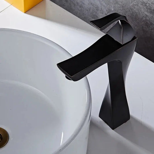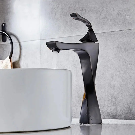 New Design Basin Faucet Black and Chrome Bathroom Sink Faucet Single Handle Basin Taps Deck Wash Hot Cold Mixer Tap Crane