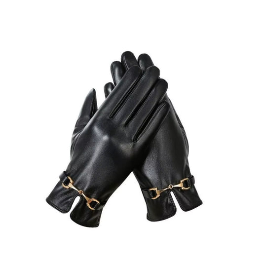Ladies Full Finge PU Leather Gloves Windproof Waterproof Driving Gloves Thicken Winter Warm Touch Screen Gloves Outdoor Sports