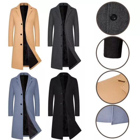 Men’s Winter Warm Trench Coat – Long Formal Jacket with Button-Up Design, Stylish Smart Work Overcoat