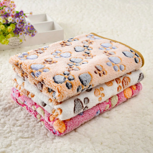Pet Mat Paw Print Cat Dog Puppy Fleece Soft Warm Blanket Bed Cushion Mattress