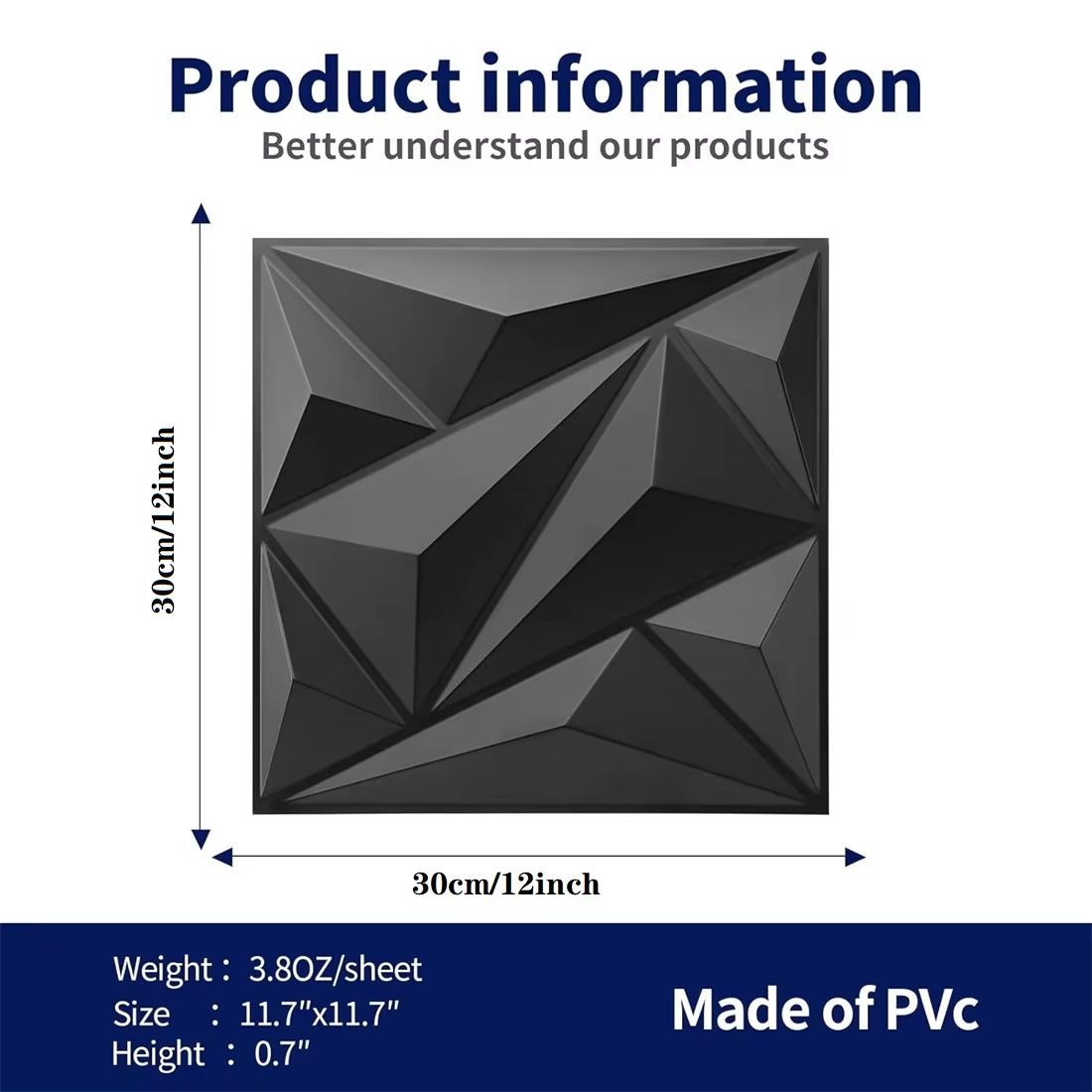 10Pcs 3D Diamond Design Wall Panels – 30x30cm Matte White/Black, Fireproof DIY Home Decor Wallboard