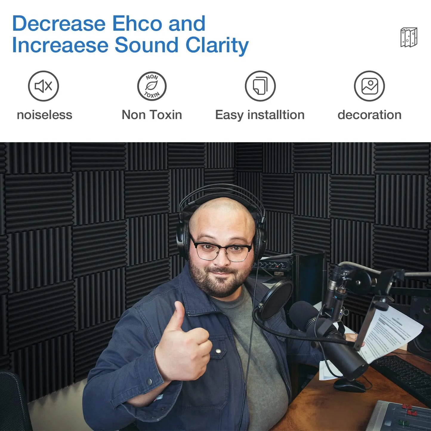 Upgrade your space with 12 Pack Self-Adhesive Acoustic Panels, designed to deliver high-performance soundproofing and modern aesthetics. Perfect for professional and personal use, these panels ensure excellent sound absorption and noise reduction while complementing your décor.