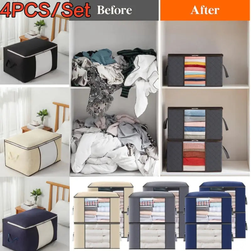 Transform your home into a clutter-free oasis with the 4Pcs 90L Large Underbed Clothes Storage Bags. Say goodbye to clutter and hello to organized living - because a tidy space is a happy space.