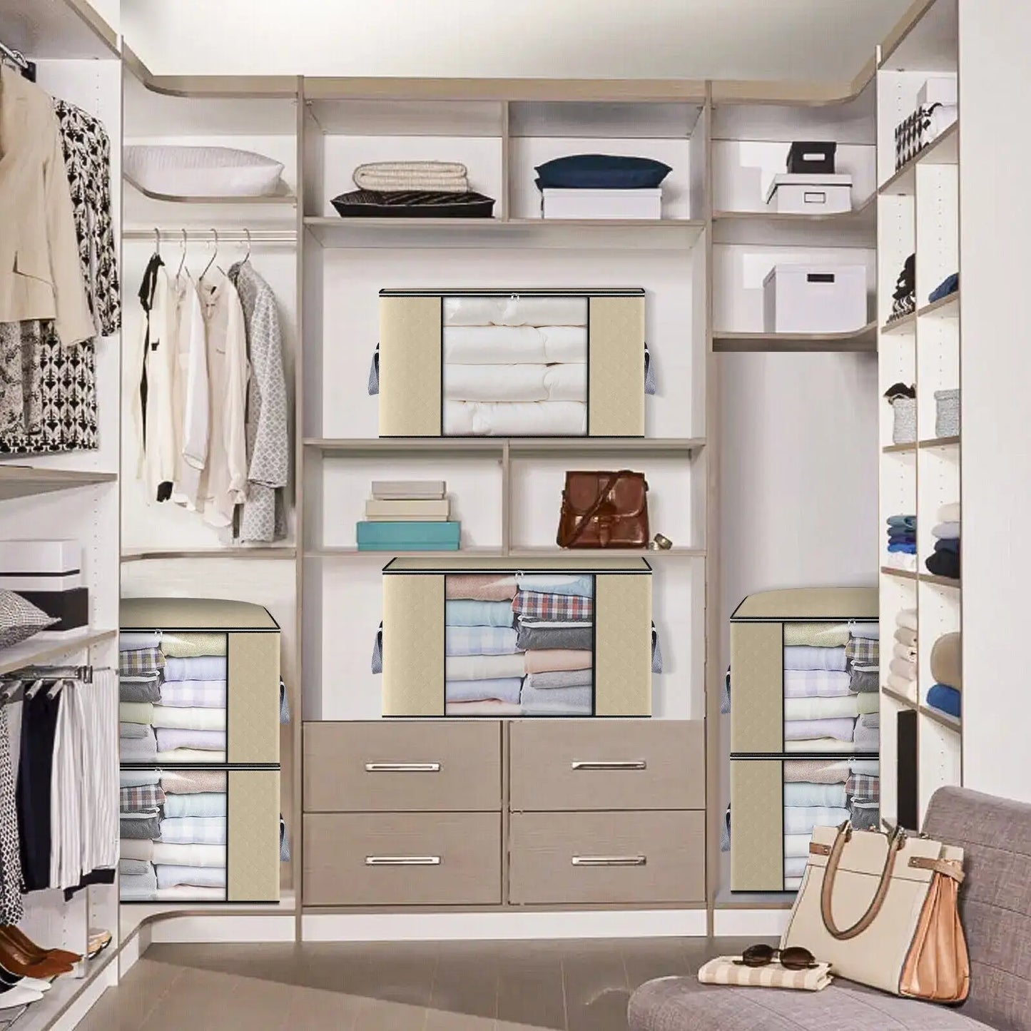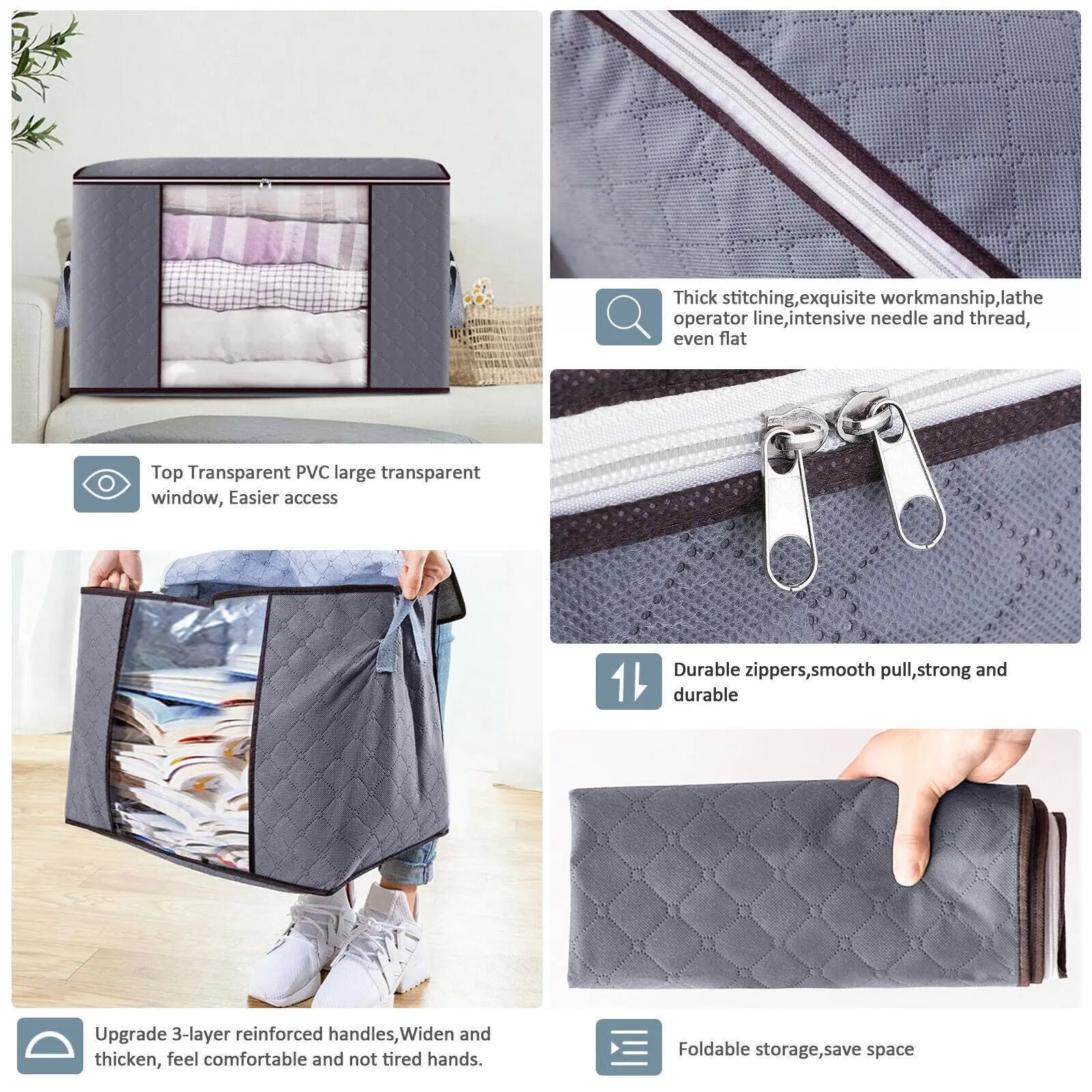Introducing the 4Pcs 90L Large Underbed Clothes Storage Bags - your solution to maximizing space and organization in your home. These zipped organizer wardrobe cube boxes are designed to efficiently store and protect your clothing, bedding, and other items while optimizing your closet or underbed space.