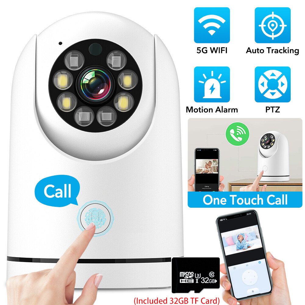5G IP Camera Baby Monitor WiFi Indoor Wireless Surveillance Pet Camera Auto Tracking PTZ Security Camera with 32GB Card