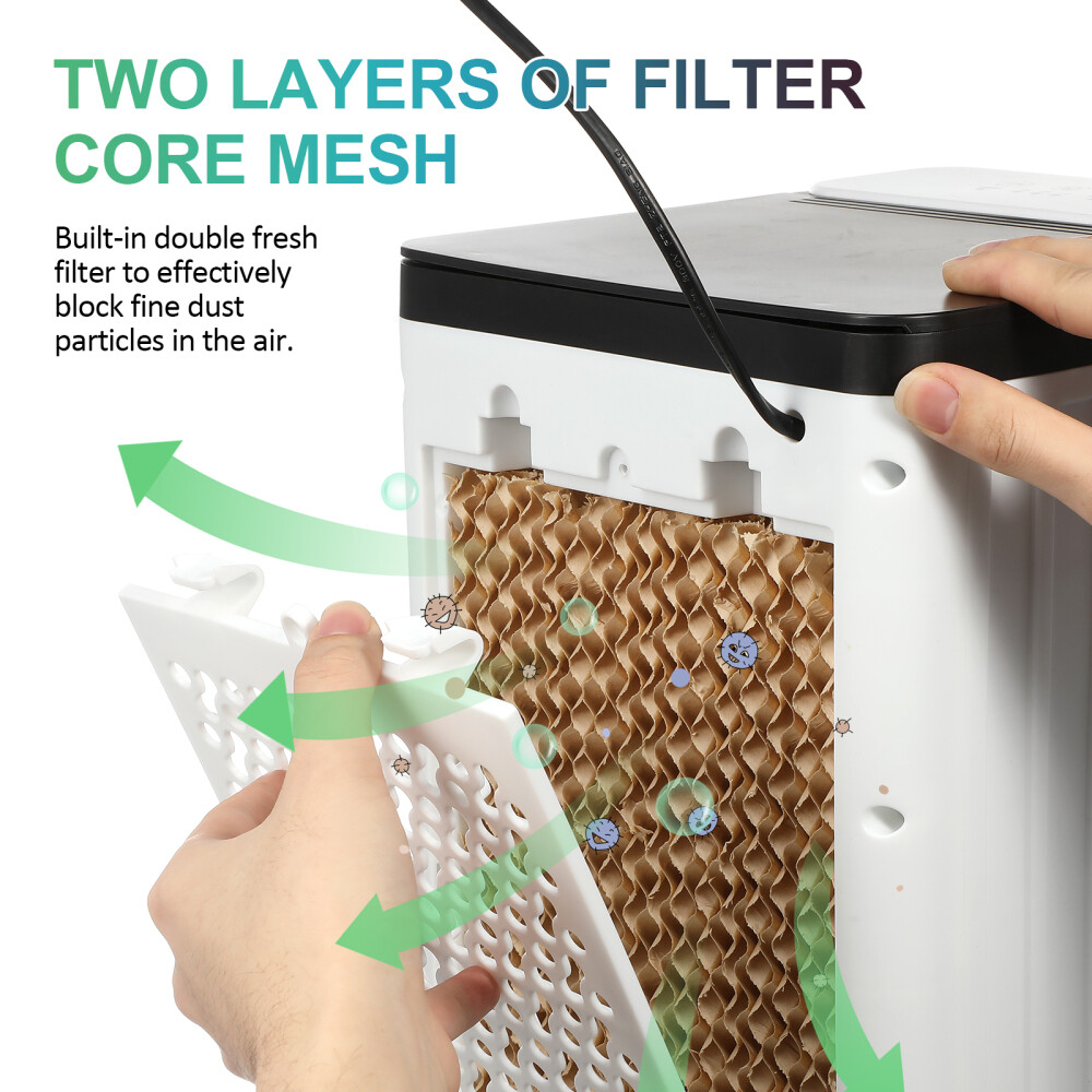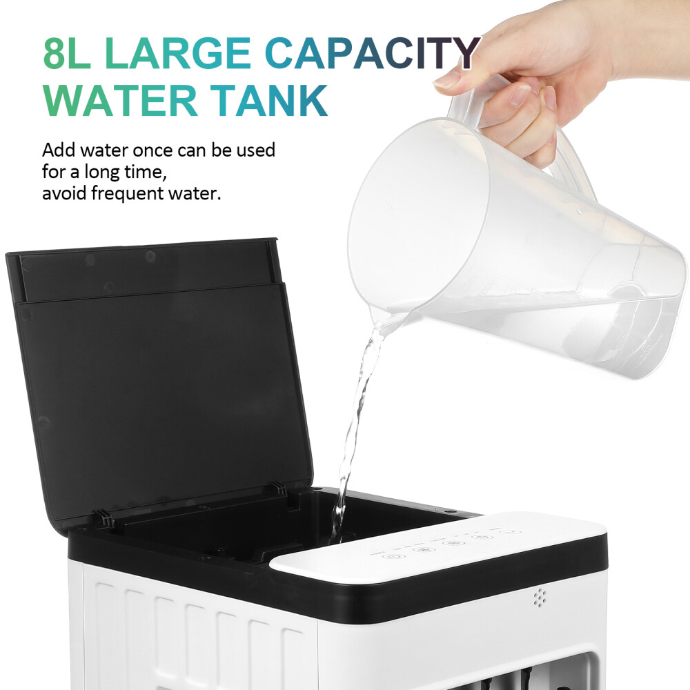 The 8L Portable Air Cooler is your go-to summer companion for powerful, energy-efficient cooling without the need for costly air conditioning. With a large water tank, 3 included ice packs, remote control, and multiple fan modes, it’s designed to keep you chilled, comfortable, and in control – all while saving energy and improving air quality.