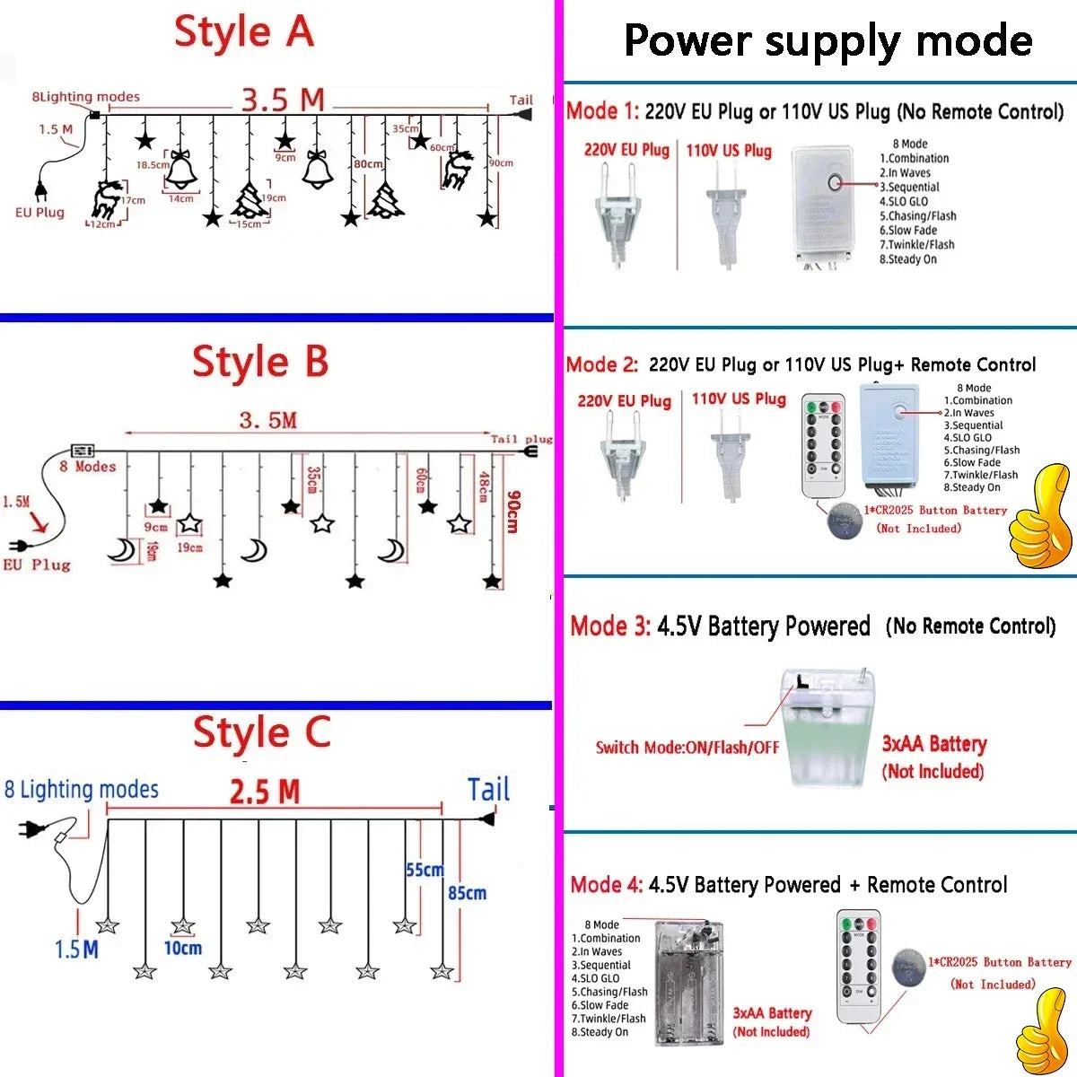 Christmas Decoration Festoon String Lights Fairy Garland Curtain Outdoor Indoor Decor for Holiday New Year Decoration