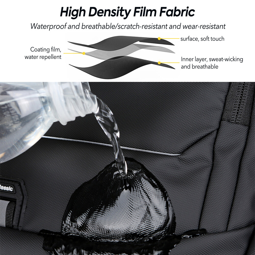 4.Durable Travel Backpack: The shoulder and handle joints are adopted bold line sewing to make it sturdier. The fabric is made of high density scratch resistant and water repellent polyester, and strengthens the key points of force, which provide more durable backpack with lockable zipper heads.