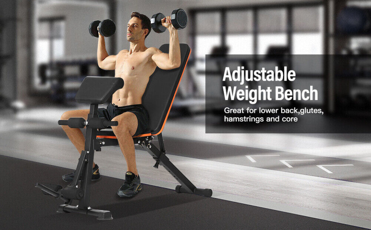 Elevate your home workouts with this Flat Weight Bench with Roman Chair, designed for strength training, core exercises, and more. Built with a heavy-duty steel tube frame for maximum stability, it supports up to 450 lbs. Featuring high-density foam padding for comfort and non-slip adjustable foot caps, this bench ensures a safe and effective workout. Its lightweight and foldable design makes it perfect for small spaces, storing easily under beds or in closets. Ideal for a variety of exercises, including dumbbell presses, chest presses, crunches, and hip thrusts.