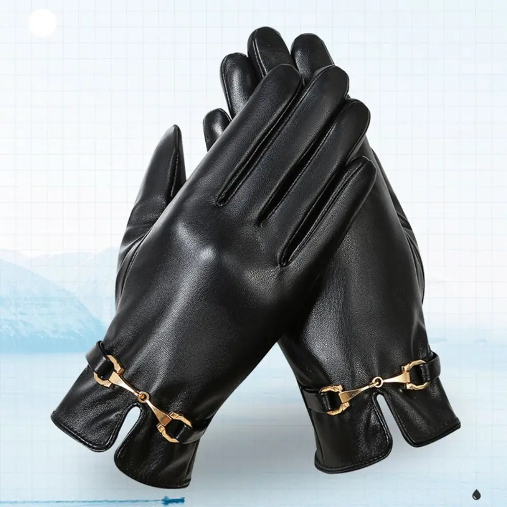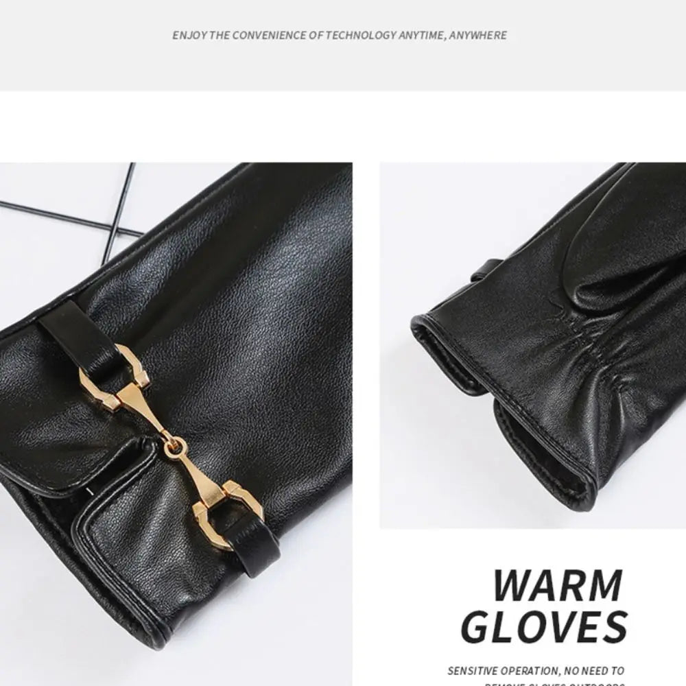 Ladies Full Finge PU Leather Gloves Windproof Waterproof Driving Gloves Thicken Winter Warm Touch Screen Gloves Outdoor Sports