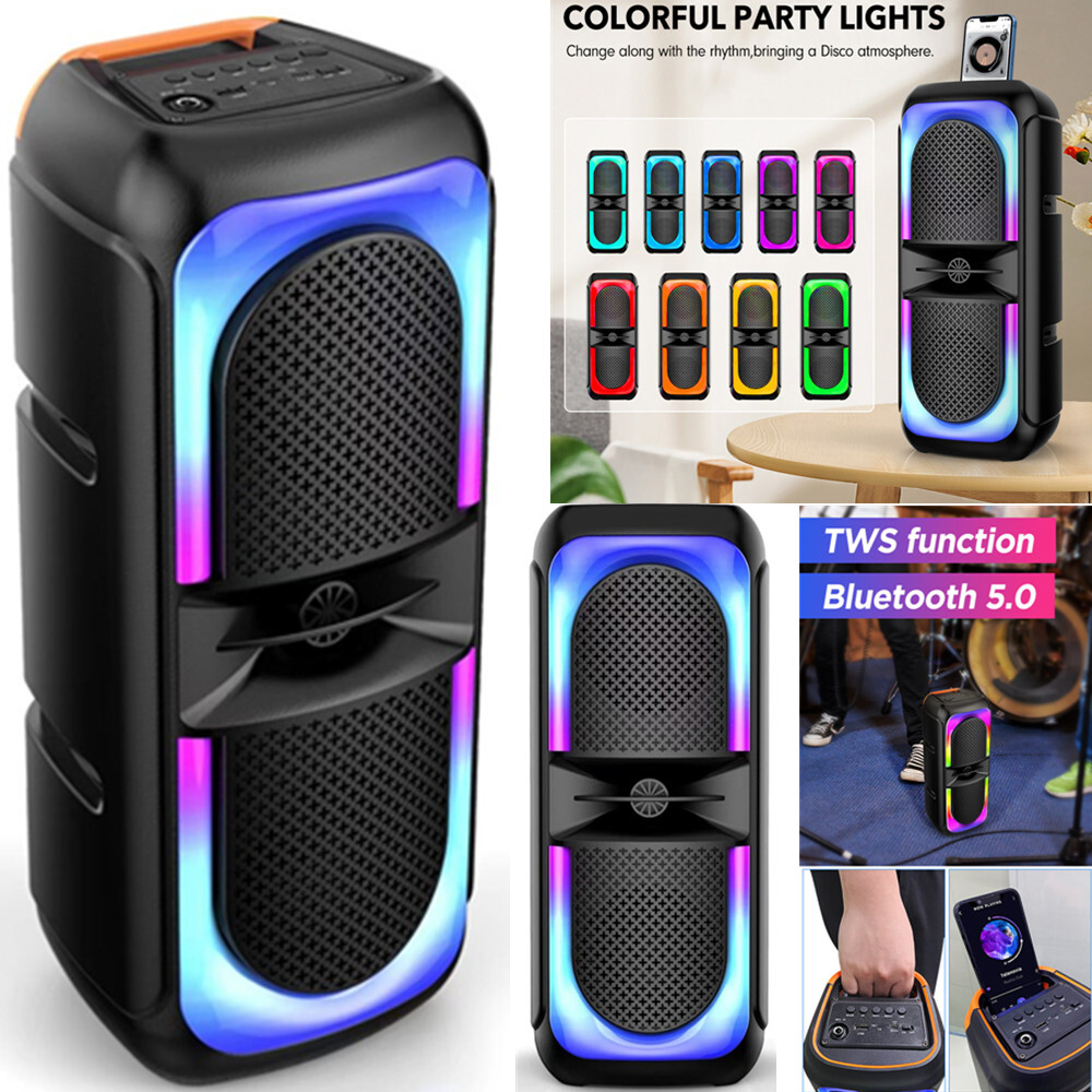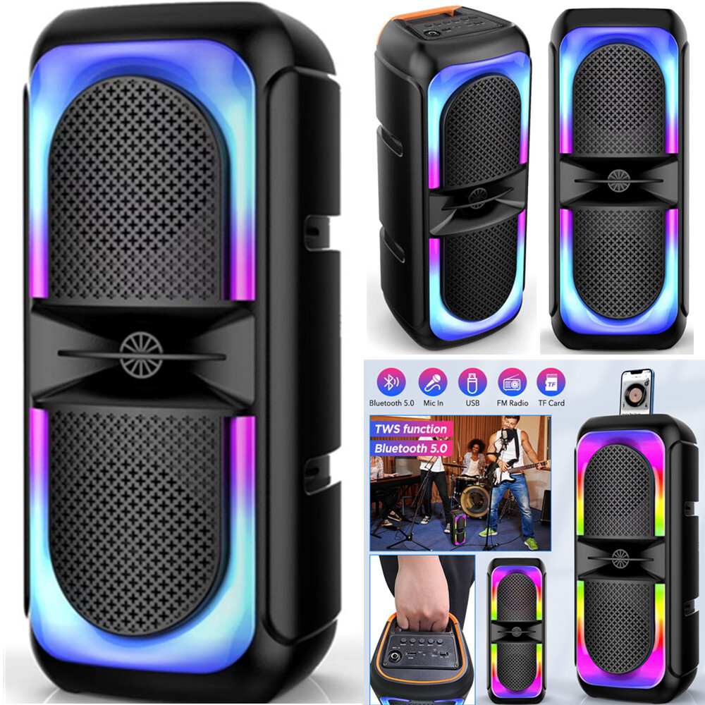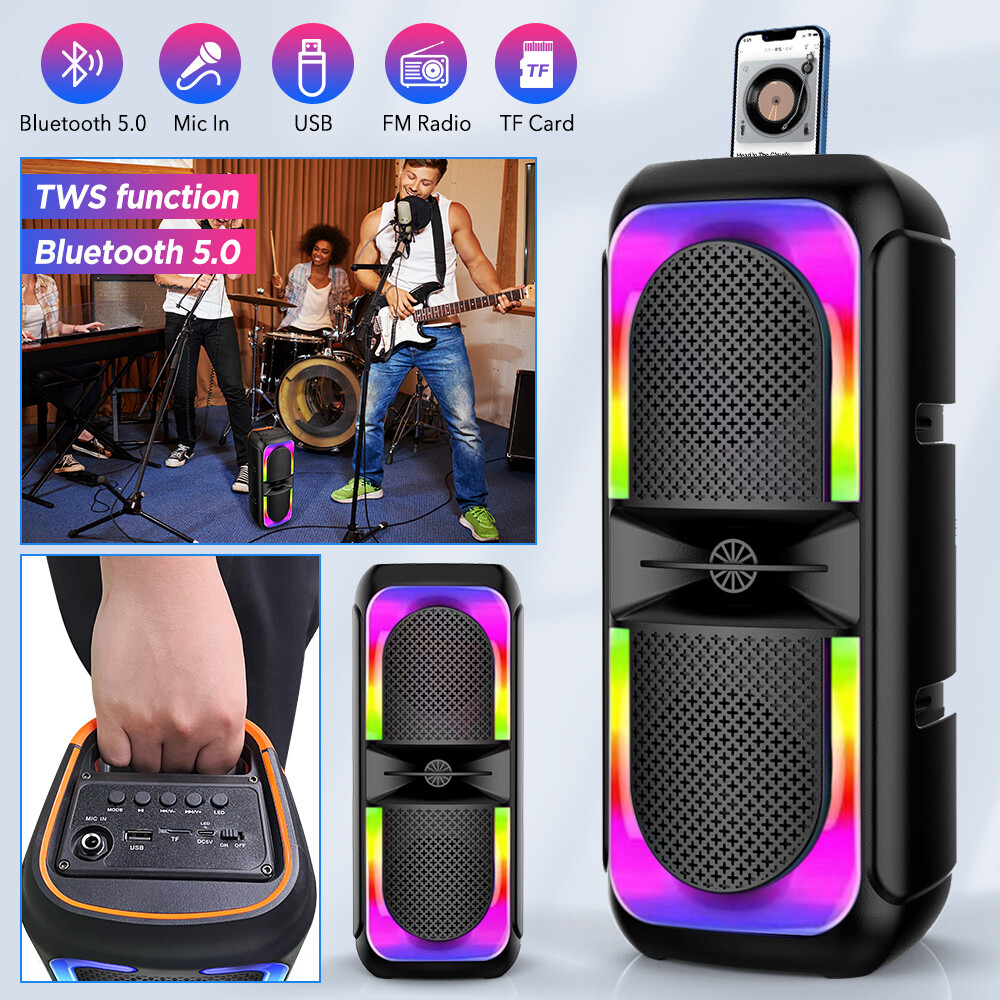 Portable Bluetooth Speaker handheld Dual Speakers Party Stereo Subwoofer RGB Lights Karaoke Heavy Bass