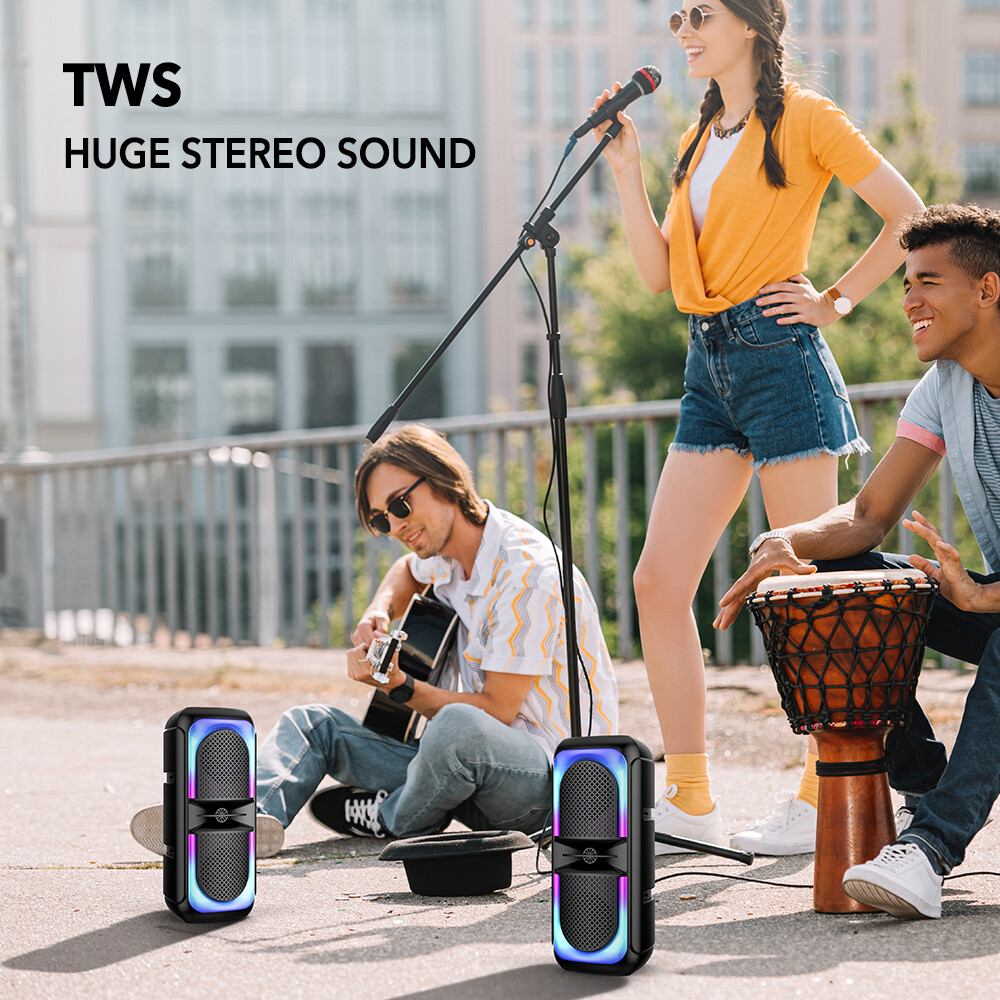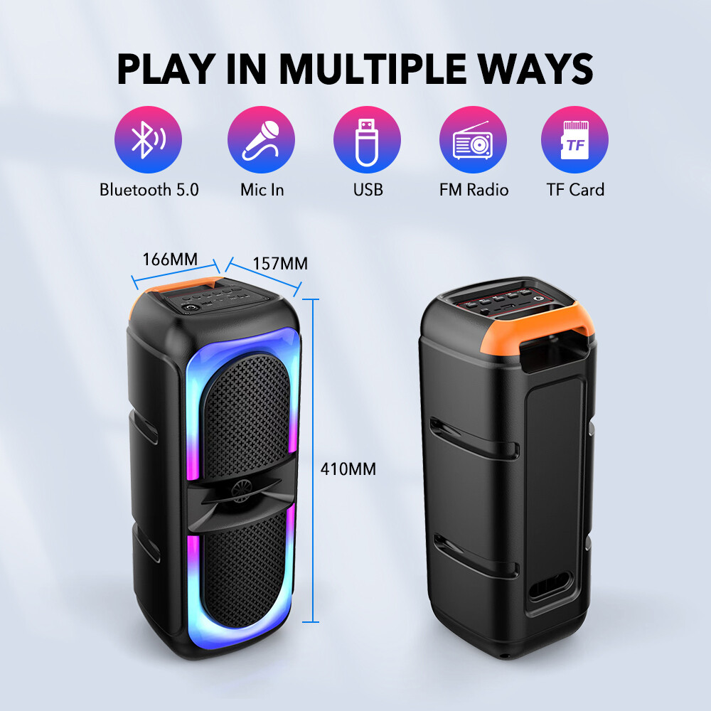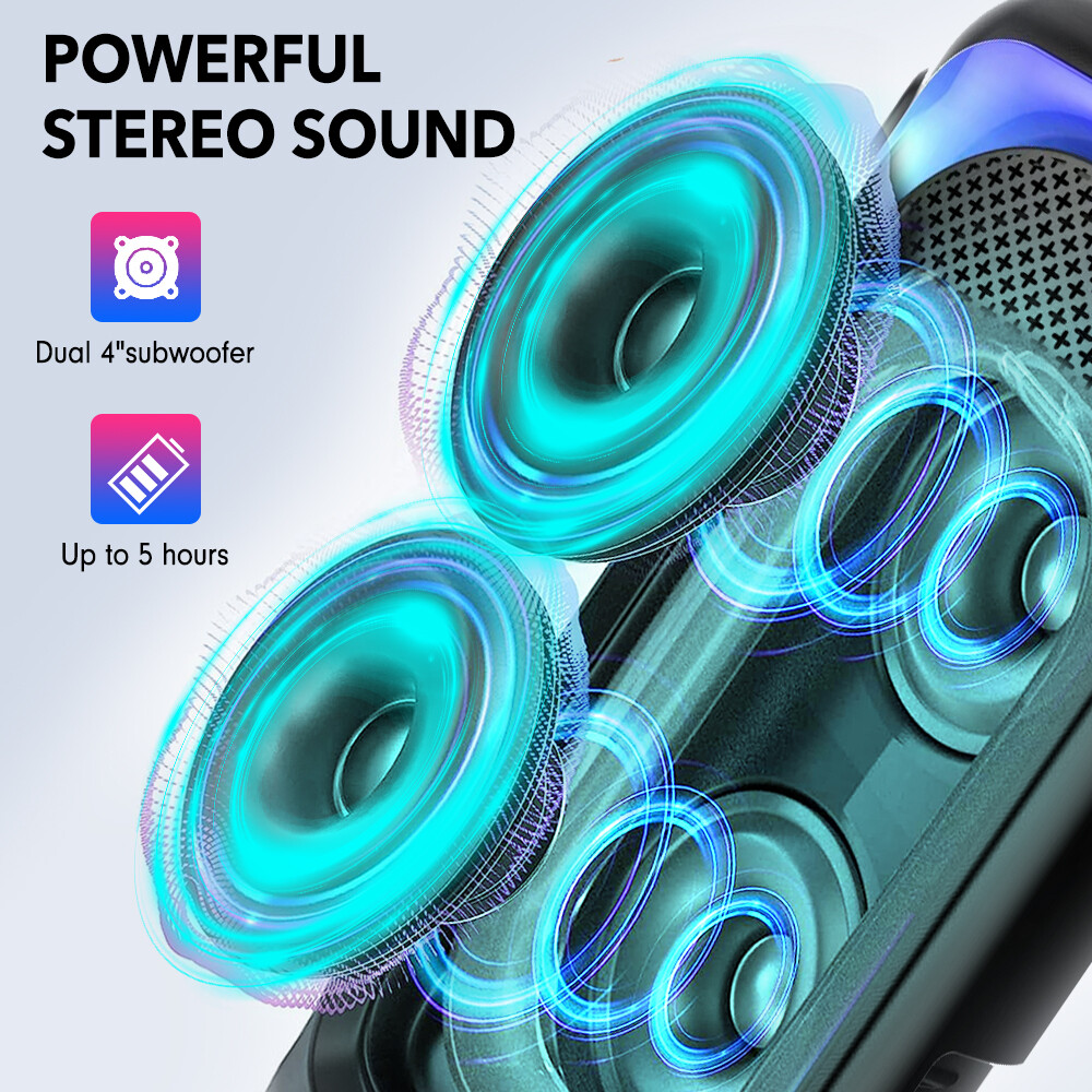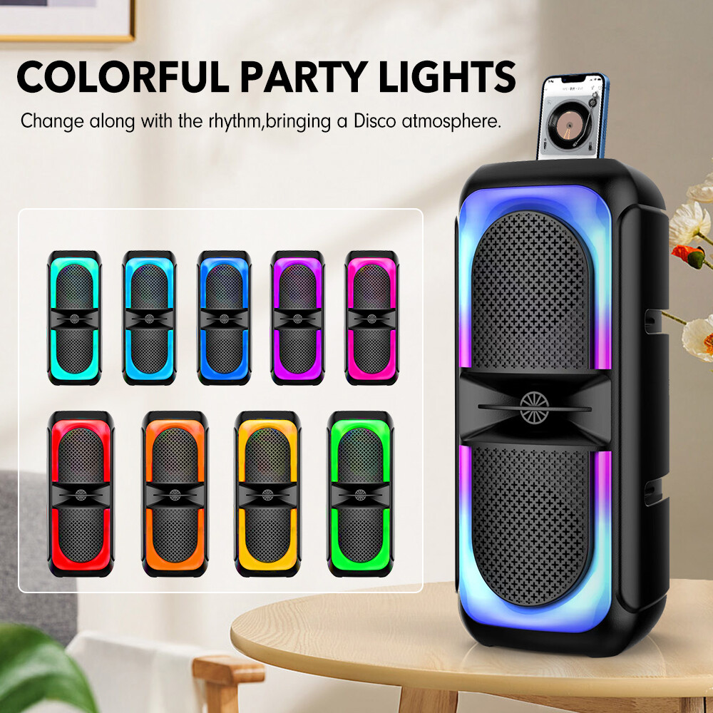 Portable Bluetooth Speaker handheld Dual Speakers Party Stereo Subwoofer RGB Lights Karaoke Heavy Bass