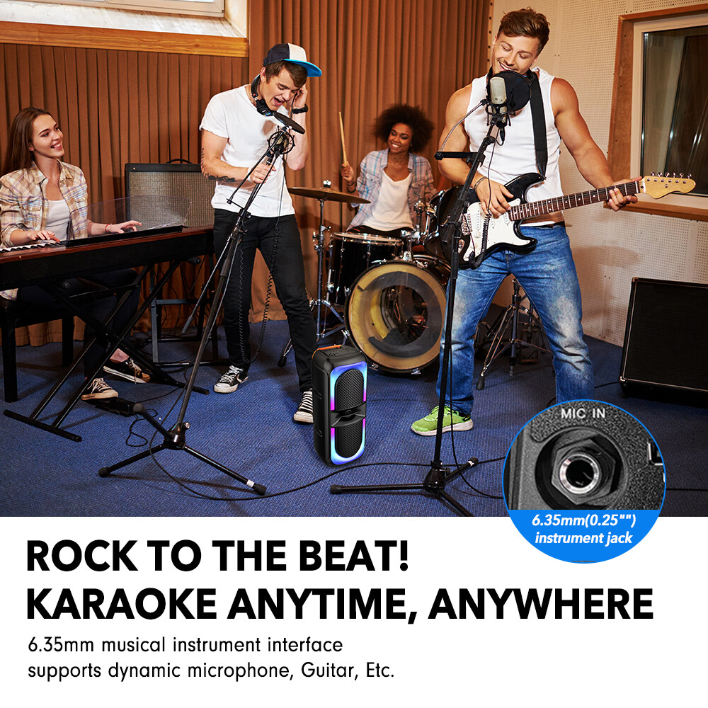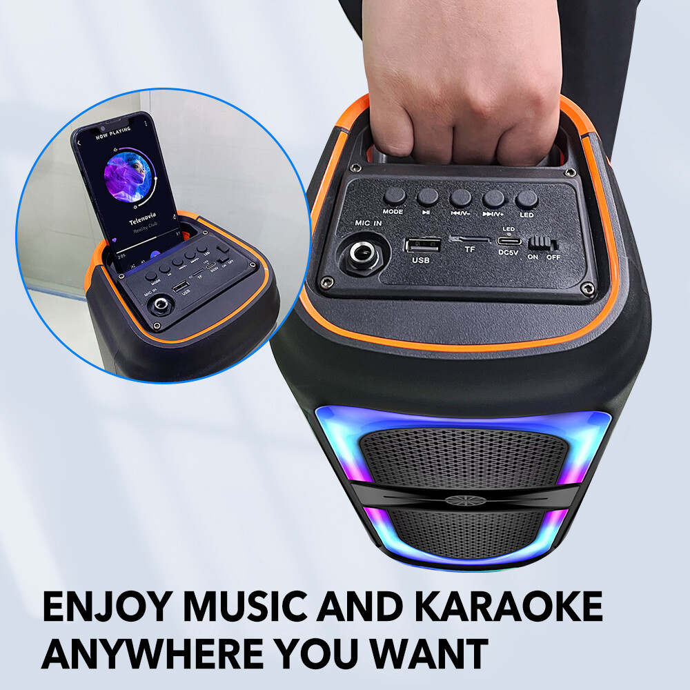 7.Lightweight & Portable: This compact karaoke speaker is easy to carry around with its built-in handle and phone holder, so you can bring the party wherever you go, indoors or outdoors.