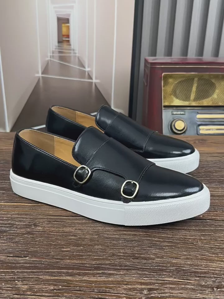 A2: They are slip-on loafers with a double monk strap for easy wear and style.