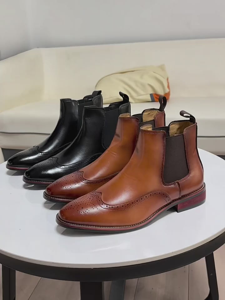 Men's Classic Retro Chelsea Boots – Brogue-Inspired British Style Ankle Dress Boots for Casual & Business Wear