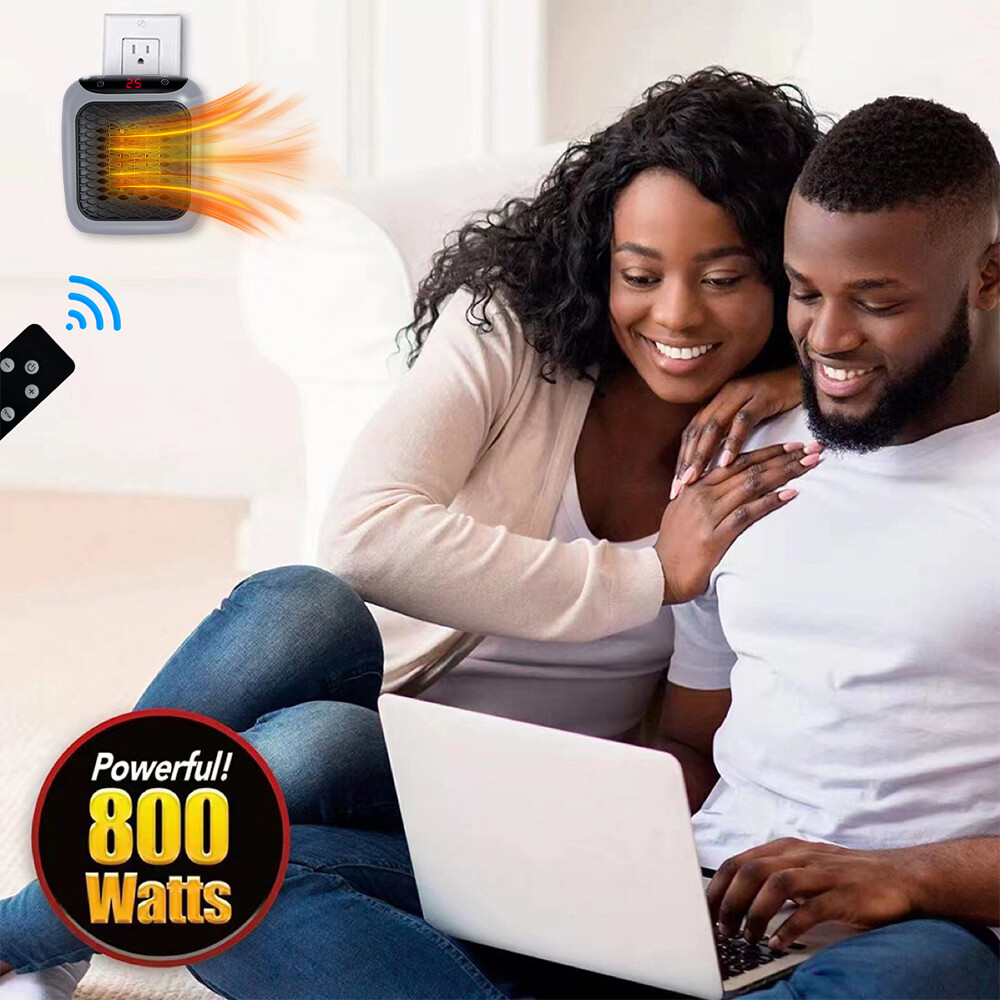 Mini Heater Fan Wall Plug in Portable Ceramic Space Heater Timer 800W +Remote