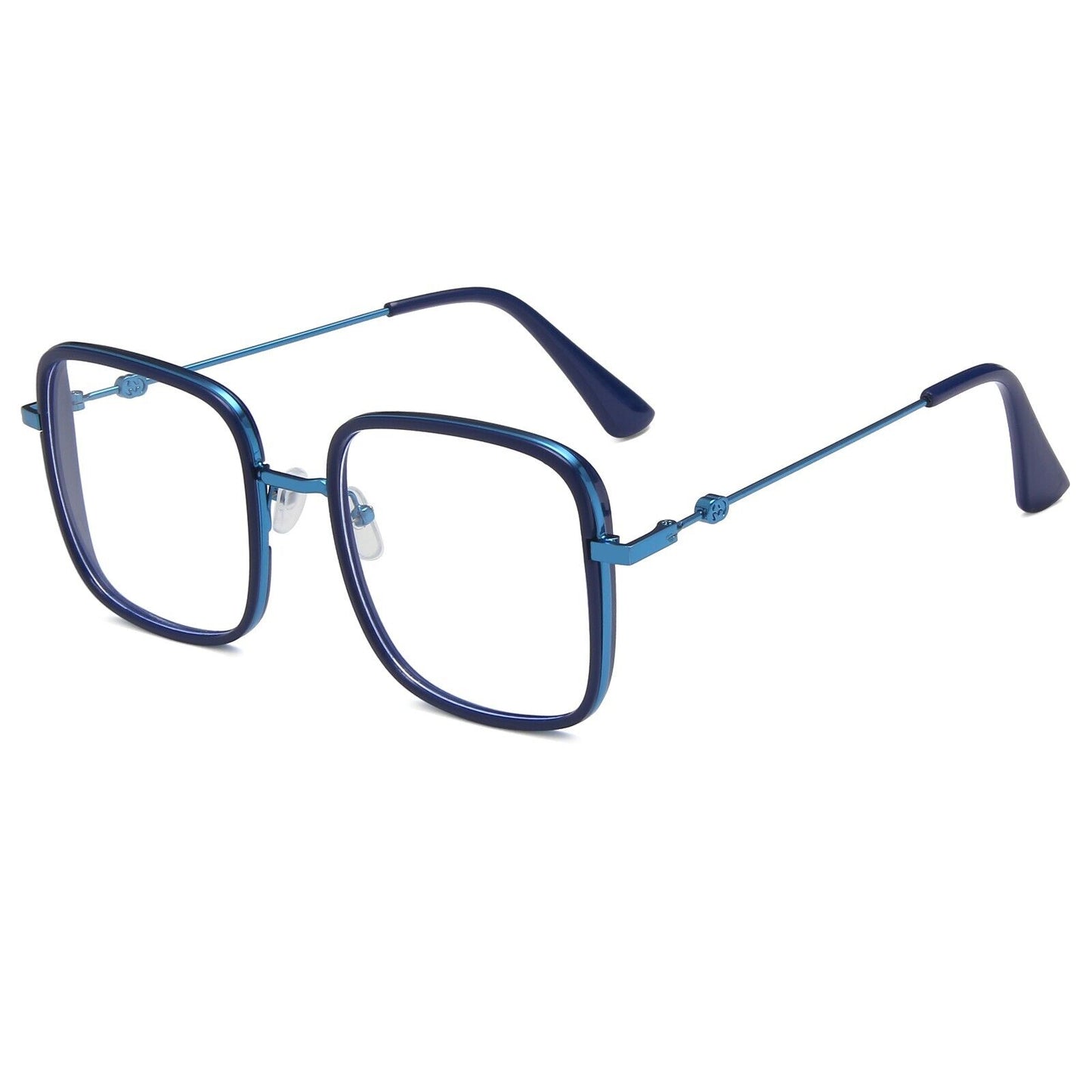 tep up your eyewear game with these Oversized Square Metal Frame Eyeglasses that blend retro style with modern eye protection. Designed to suit both men and women, these glasses feature a bold, oversized square frame crafted from lightweight and durable metal, ensuring a comfortable yet sturdy fit. With anti-blue light lenses, they help reduce eye strain from digital screens, making them perfect for long hours of computer use, gaming, or scrolling on your phone.