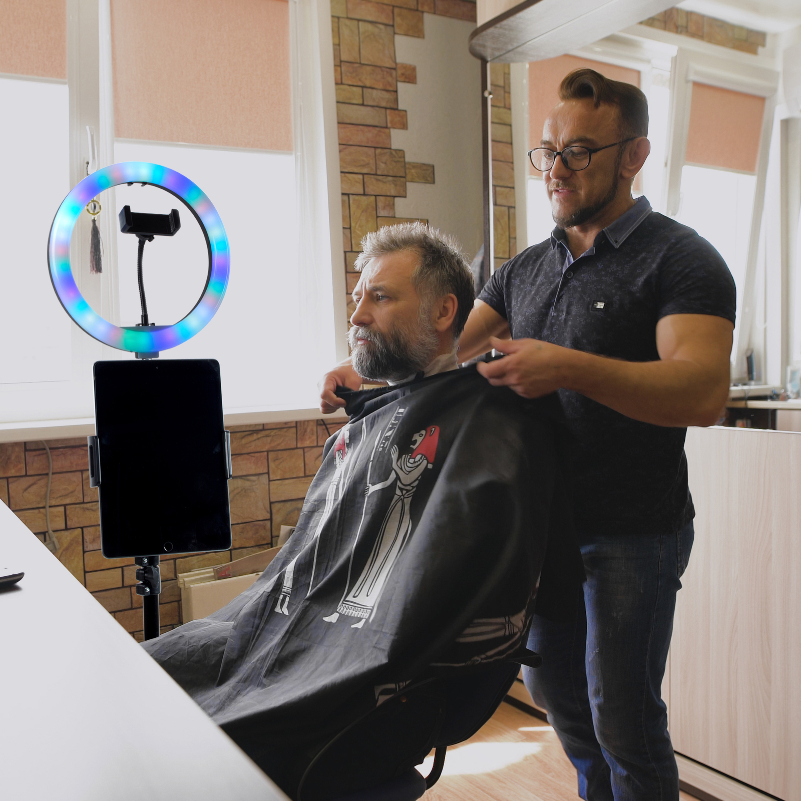 - The 26 cm ring light boasts three white light modes as well as a multicolour function so users can record with optimum lighting.