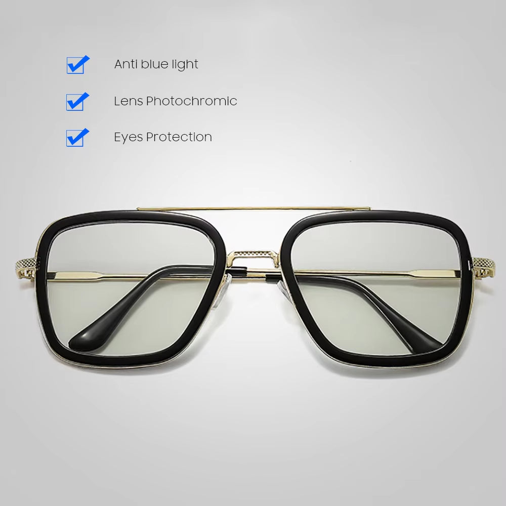 Square Photochromic Glasses Men Anti Blue Light Blocking Eyeglasses Computer Ray Retro Unisex Tony Stark Goggles