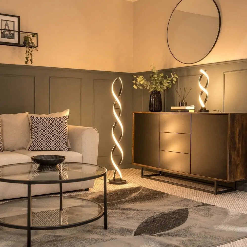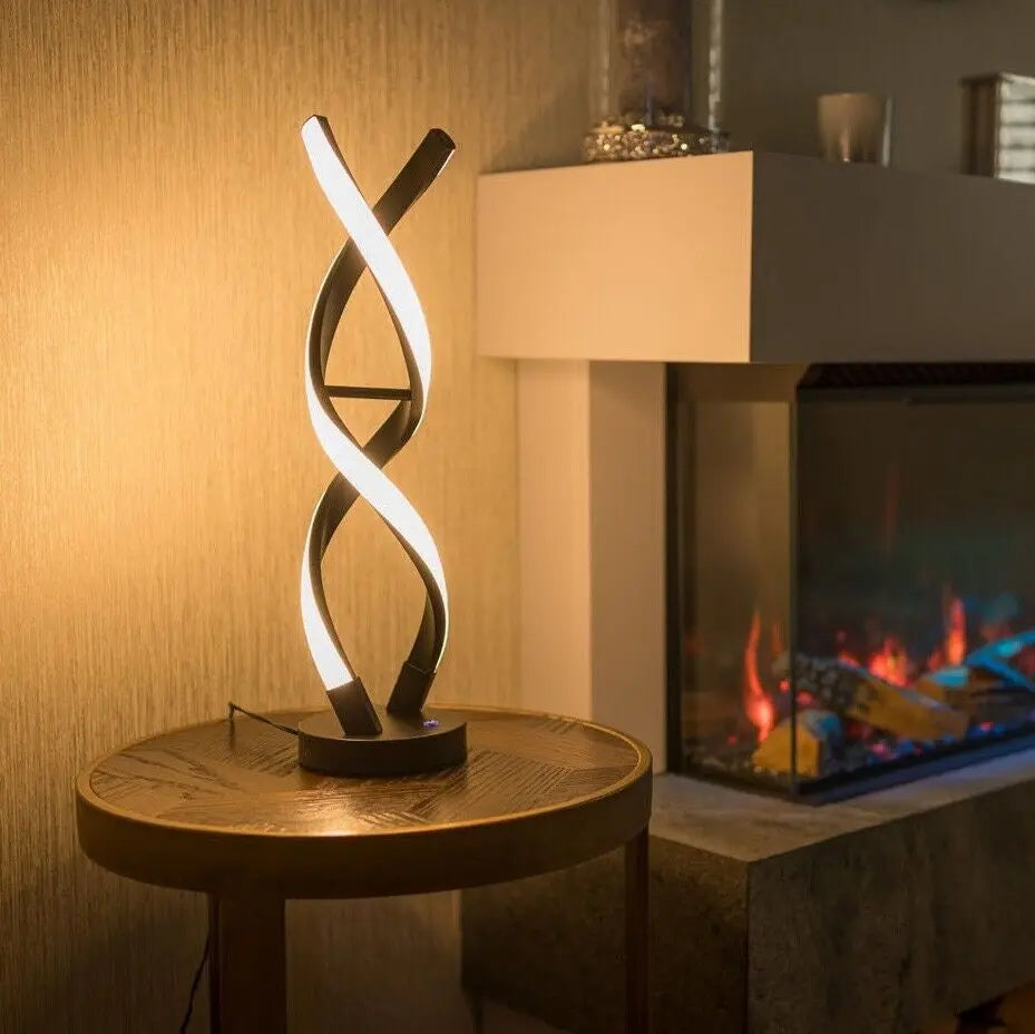 Touch Table Lamp Light Black Double Twist Integrated LED Living Room Lighting