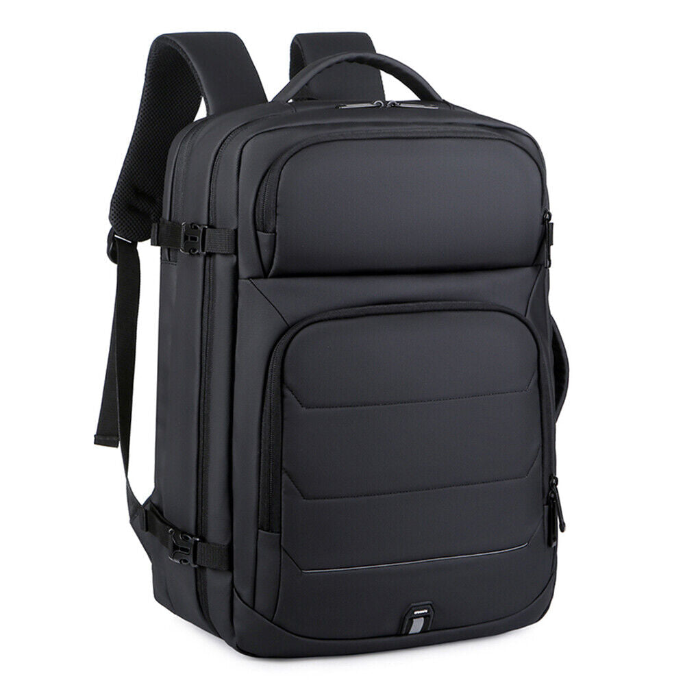 ![]() 50L Expandable Travel Backpack TSA Flight Approved Laptop Backpack Weekender School Bag with USB Charging Port Features: 2.26-50L Expandable and Large Capacity:This extra large travel backpack with expandable feature offers you more packing capacity.Before expand,the carry on backpack size is:18x14x6.5 inch;after expand,size is 18x14x8 inch.Weight:1.9 Ib (900g) 3.Multi Compartment:The main compartment can hold your travel goods,fit 5-8pcs clothes;Front compartment can also hold magazines,Ipad and books and power bank which can charge your phone;17.3 inch laptop compartment with padded. 4.Durable Travel Backpack: The shoulder and handle joints are adopted bold line sewing to make it sturdier. The fabric is made of high density scratch resistant and water repellent polyester, and strengthens the key points of force, which provide more durable backpack with lockable zipper heads. 5.Dual Handles: The two thick handles are comfortable for long time carrying. A great companion for commuting, business trip, hiking, travel, camping and other outdoor activities. 6.Waterproof&USB Port:Selection of high quality water-repellent nylon and breathable, abrasion-resistant microfiber faux leather. Little rain or water drops will not penetrate the bag.This premium travel backpack provide USB charging port with built-in charging cable which is easily to charge your smart phone while you are traveling