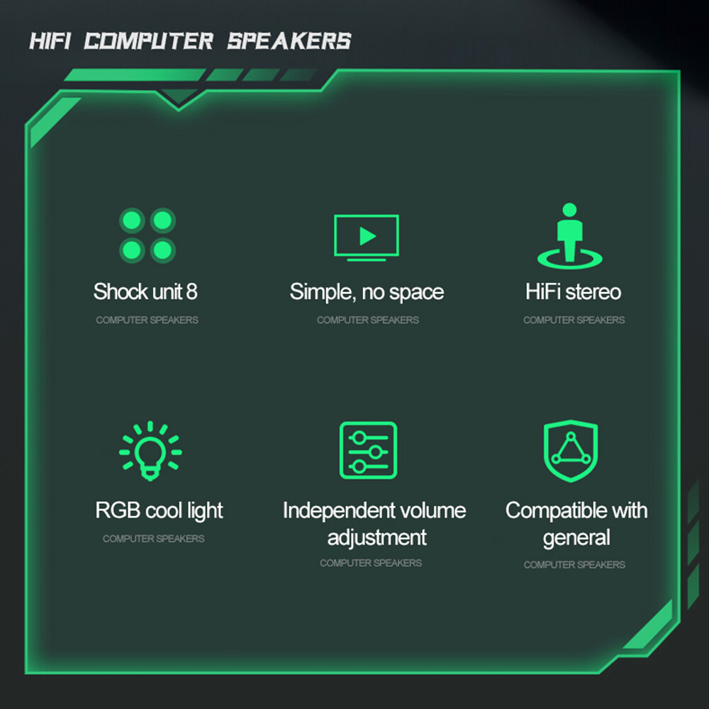 USB Powered Wired PC Speakers LED Light Computer Speakers with Knob for Desktop PC Monitor Laptop Feature: Specification: Packing List: