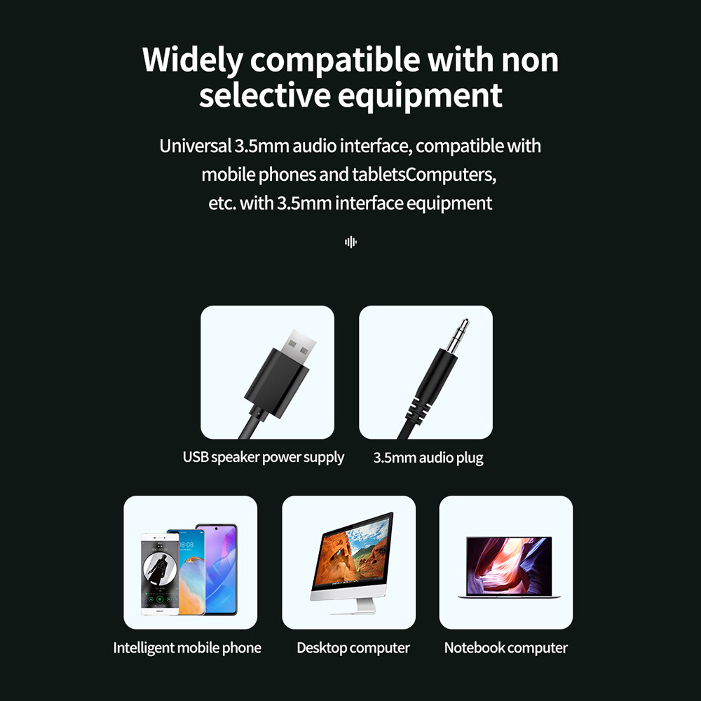 5.High Compatibility: Powered by USB and connected to your devices via a universal 3.5mm AUX-in cable, eliminates the need for a wall socket. Work well with your desktop, laptop, PC and more.