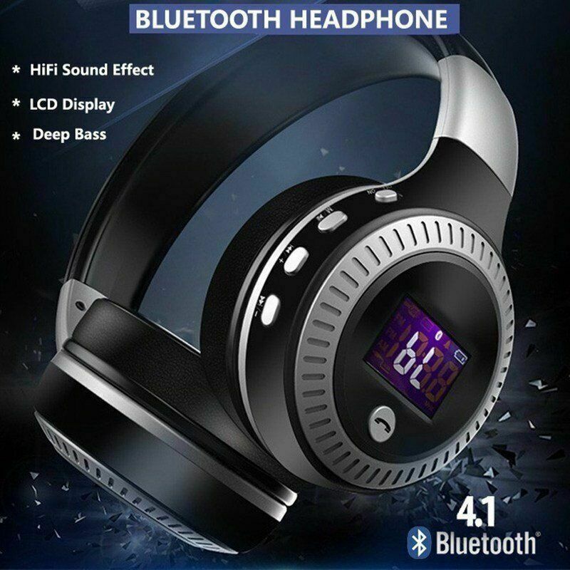 LCD Display HiFi Bass Headphone Foldable Wireless Stereo Bluetooth Headset for Cellphone PC Laptop with Mic Support FM Radio Micro-SD Card Slot