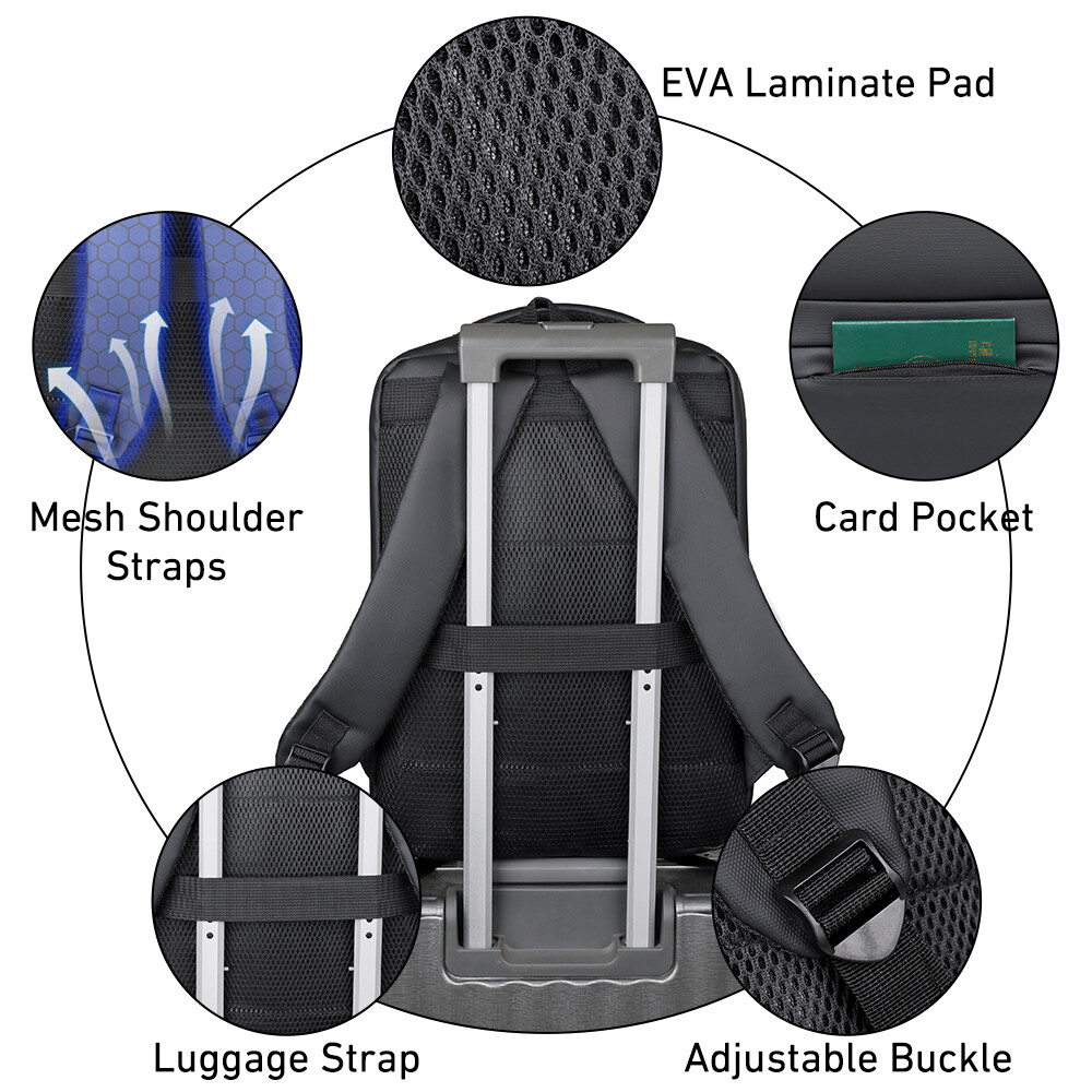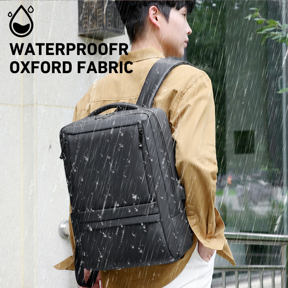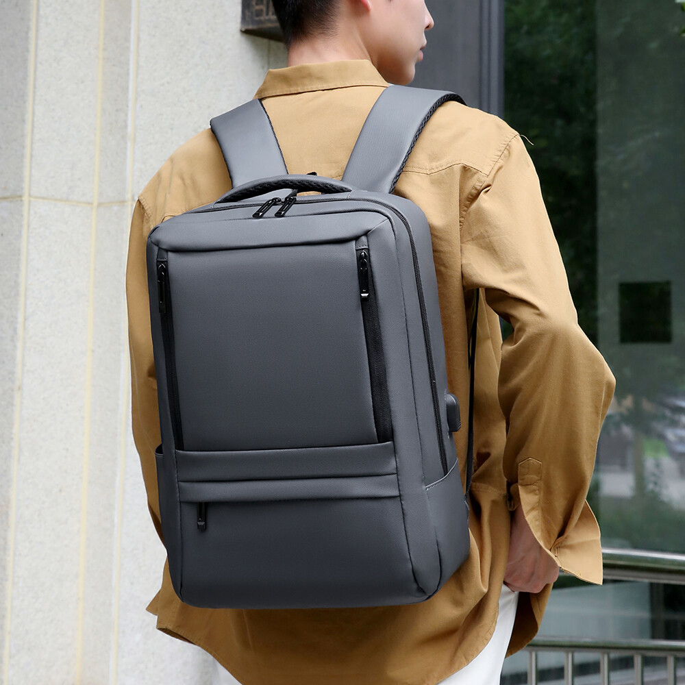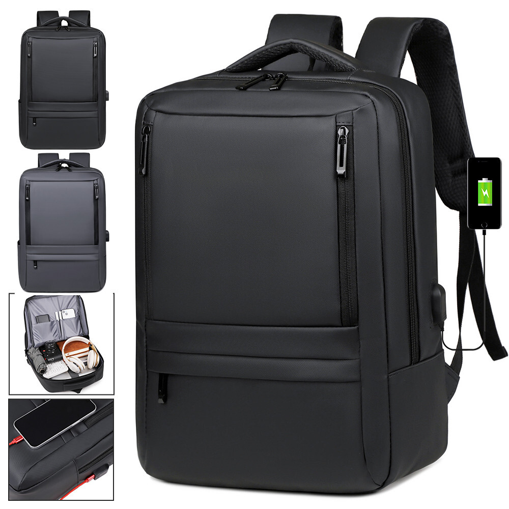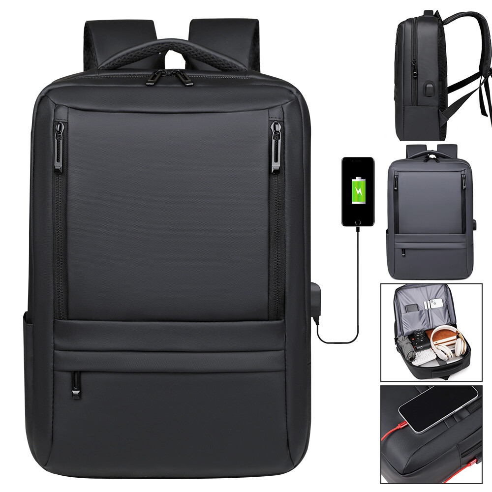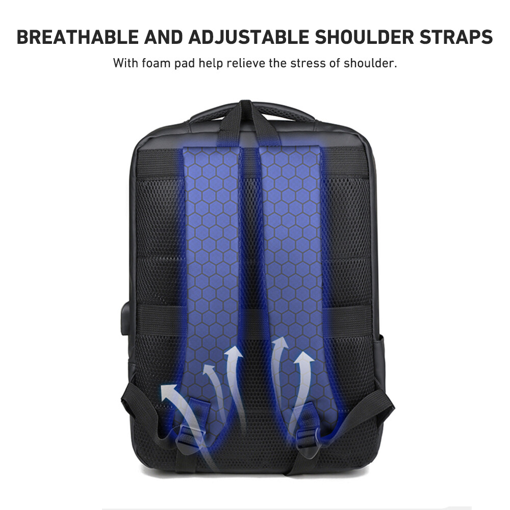 Backpack for Men Women Business Slim Backpack with USB Charger Computer Lightweight Anti-theft Travel Backpacks 15.6 inch Resistant Laptop Bag for Work Office Features: 1.Easy to Organize: This laptop backpack for men has various practical compartments and pockets: main pocket*1, front zipper pocket*1, Side zipper pockets*2, padded sleeve for laptop *1,normal pocket*3, pocket for pen*2, phone pocket*2. Can provide roomy space for your laptop(fits up to 15.6"), iPad, folder, pens, books, purse, tablet, power bank, ect. Keeping your items organized and easy to find. 2.USB Port Design: With outside USB charging port and inside charging cable, this laptop bag with USB port offers an easy access to charge your phone when you are carrying a computer backpack on the road. (POWER BANK is not included) 3.Comfortable & Durable: This blue laptop backpacks for men is made of PU coated oxford fabric with durable metal zippers. The breathable mesh cloth on the back keeps your back dry continuously and effectively reduce back sweating. Breathable and adjustable shoulder straps with foam pad help relieve the stress of shoulder. 4.Lightweight & Convenient: The weight of this blue backpack is 670g, which is lightweight and slim, making it very suitable for carrying long time. And the wide-open mouth design help you easy to load up and keep tracking of every item, making it very convenient to use it. 5.Great Work backpack for men& Perfect Size: The size of the casual daypack backpacks is 17”×12.6" ×5.1". Perfect for indoor/outdoor activities. A luggage strap on the back of the bookbag helps to free your hand, making your journey and travelling more convenient wherever you go. Perfect choice as unversity backpack, college backpacks for men for men women. Specification: Color:Black, Grey(Optional) Package Included: