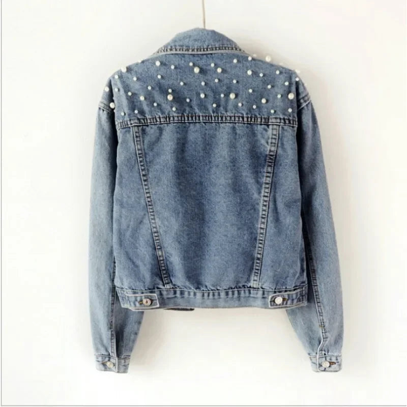 Add a touch of elegance to your casual layers with this Women's Short Denim Jacket, adorned with beautiful pearl beading. Designed with a relaxed, loose fit, itβs the perfect statement piece for breezy spring and autumn days.