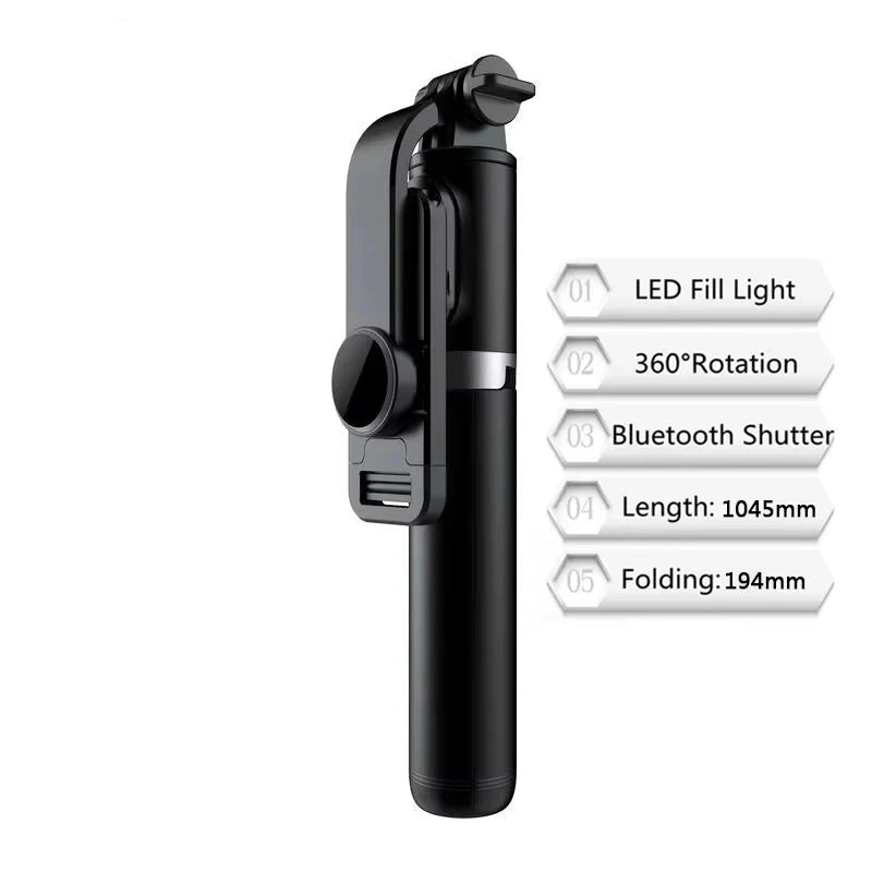 Selfie Stick 1045mm with Wireless Bluetooth LED Fill Light & Extended Tripod